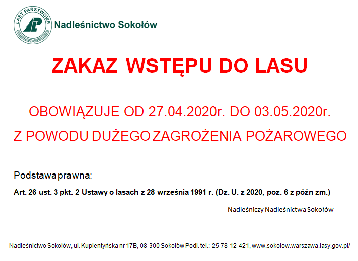 Okresowy zakaz wstępu do lasu - zagrożenie pożarowe