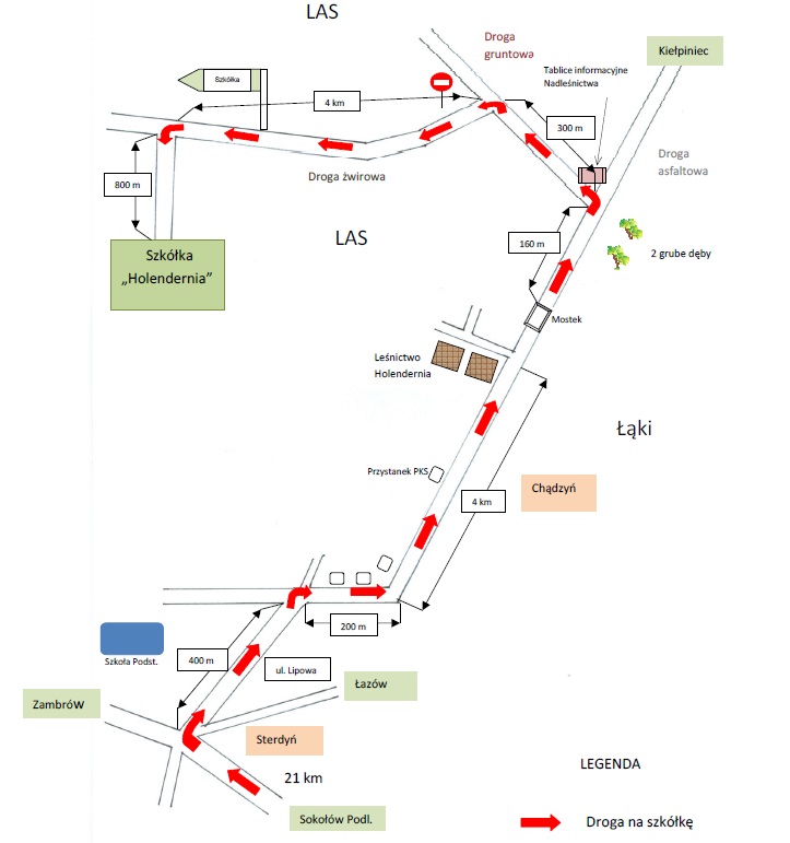- mapka dojazdu na szkółkę leśną "Holendernia".